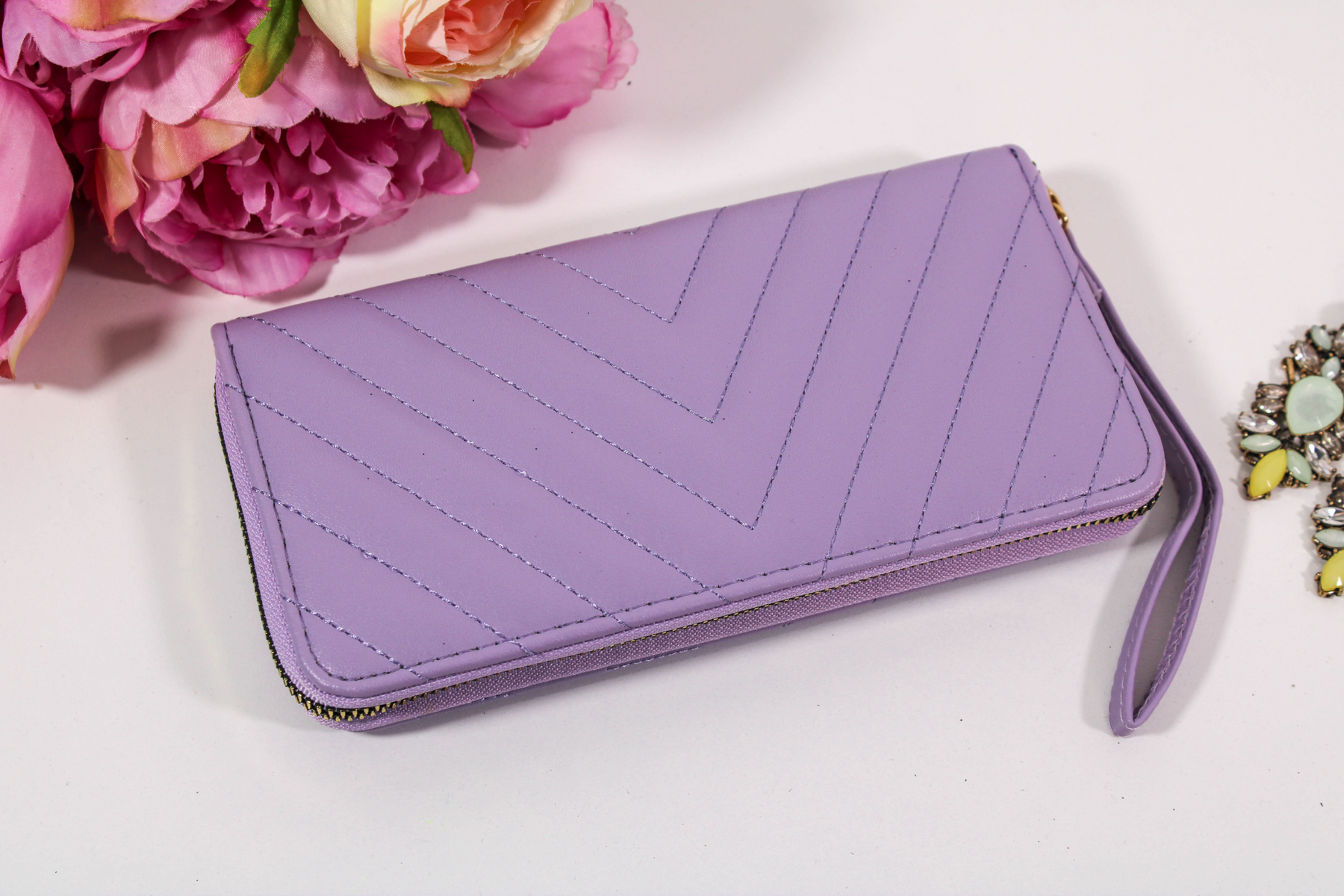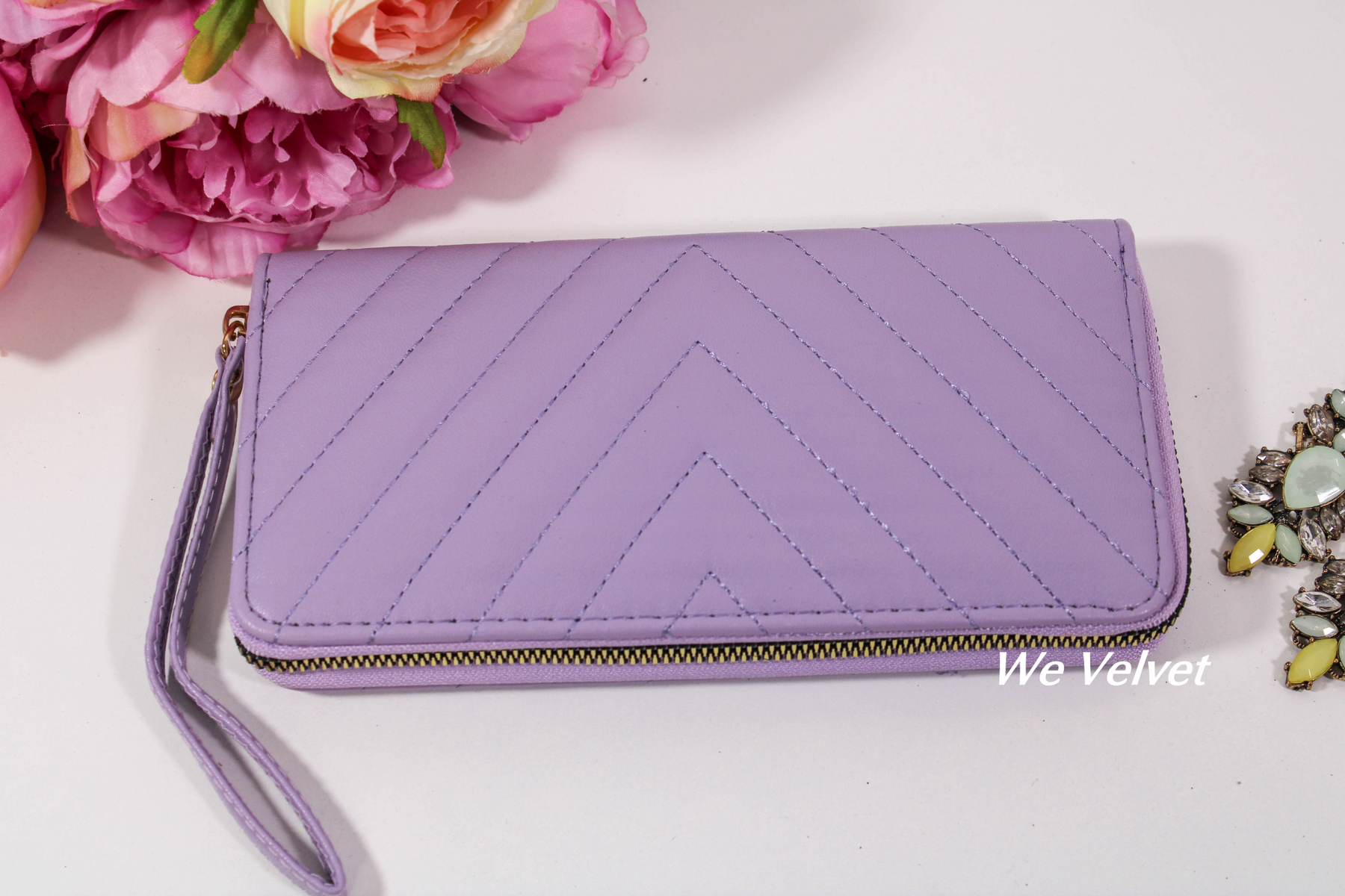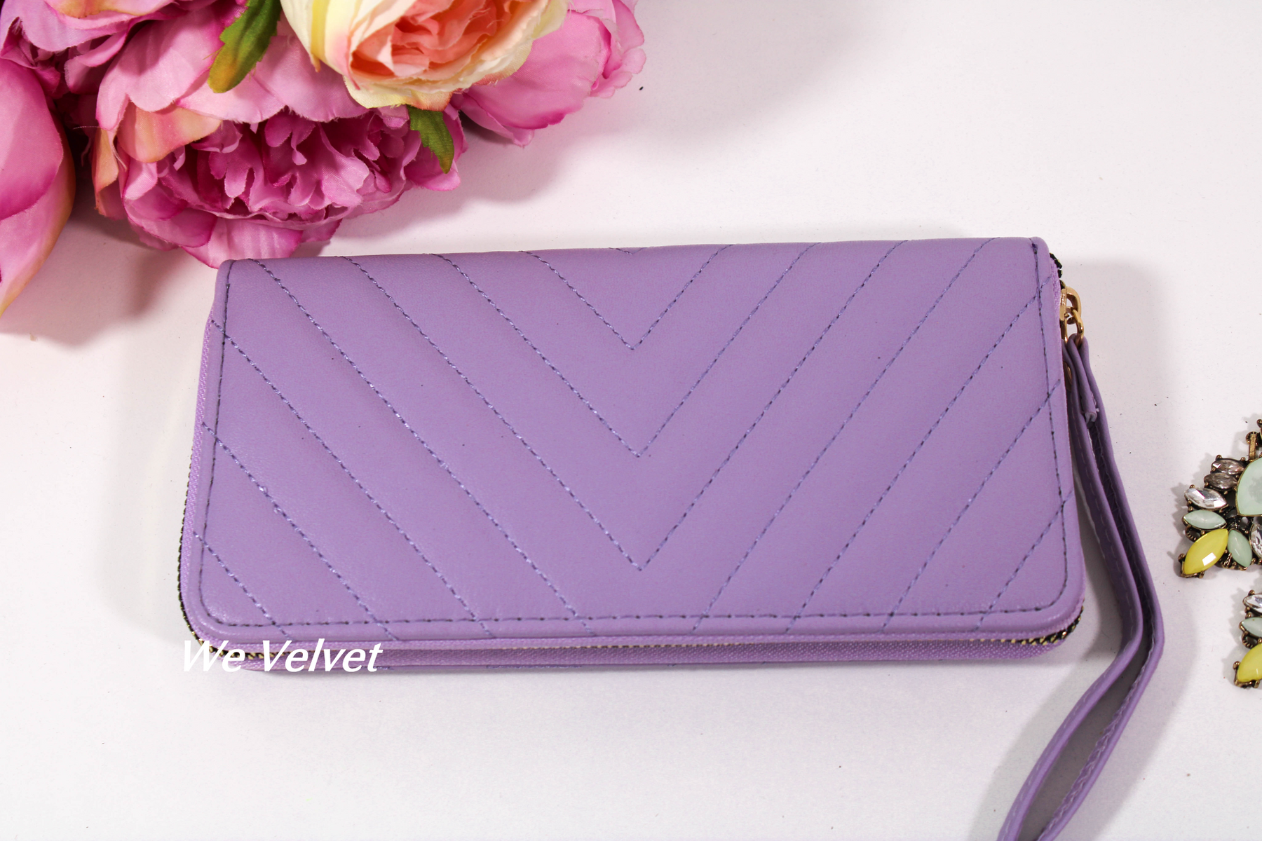 Portofelele We Velvet din piele ecologică sunt confecționate din cele mai rezistente materiale! Modelul Brielle vine însoțit de o baretă pentru mână pentru și mai mult stil și confort!