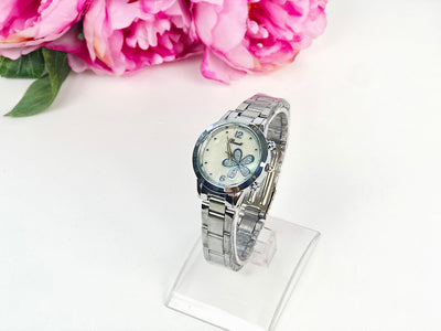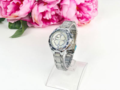 Ceas rose gold și curea silver din piele eco lăcuită C289