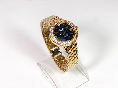 Set 2 ceasuri gold cu curea bleumarin și cutie CADOU C305