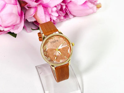 Ceas auriu și curea rose nude din piele eco lăcuită C303