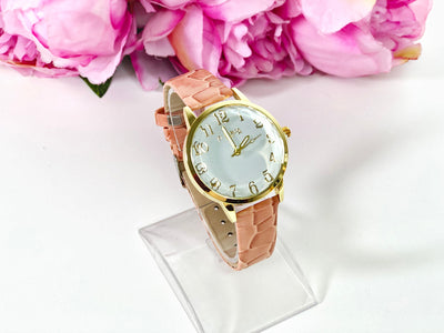 Ceas auriu și curea rose nude din piele eco lăcuită C286