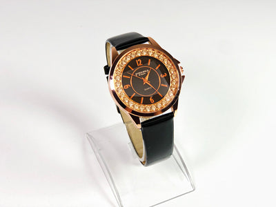 Ceas rose gold și curea neagră din piele eco lăcuită C297