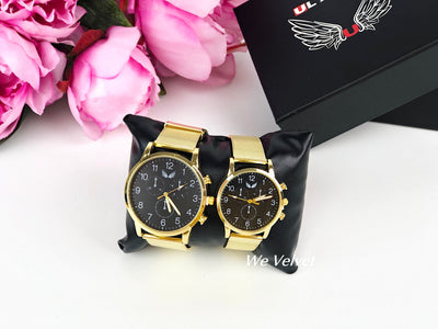 Set 2 ceasuri aurii cu cadran negru și cutie CADOU C306