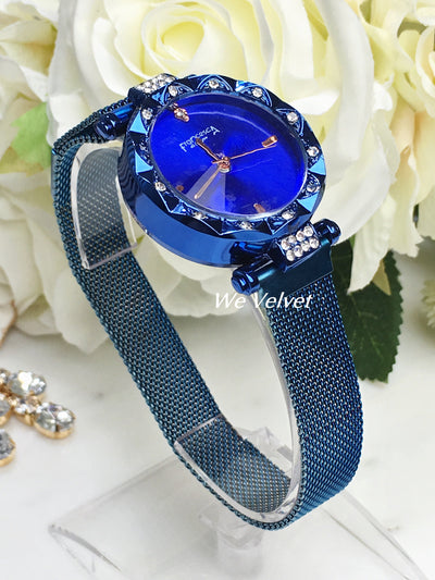 Ceas albastru electric strălucitor cu brățară magnetică Francesca di Geneva C46