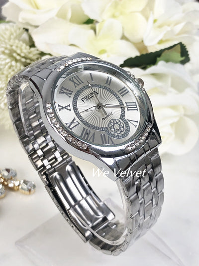 Ceas argintiu cu pietricele strălucitoare Francesca di Geneva C004