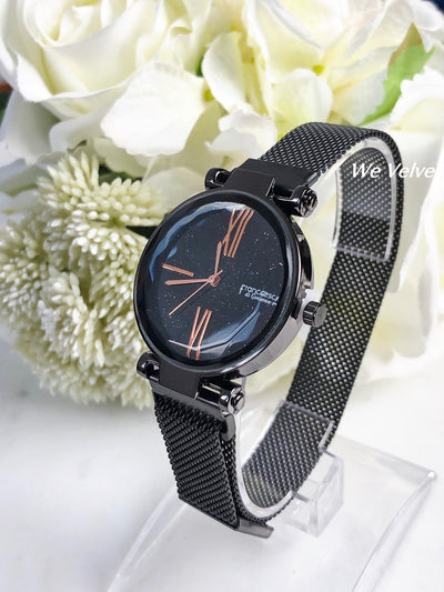 Ceas negru cu brățară magnetică Francesca di Geneva C114