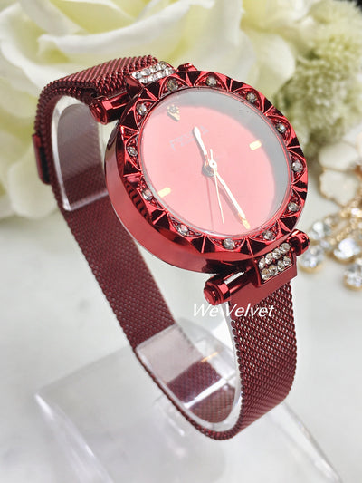 Ceas roșu strălucitor cu brățară magnetică Francesca di Geneva C133