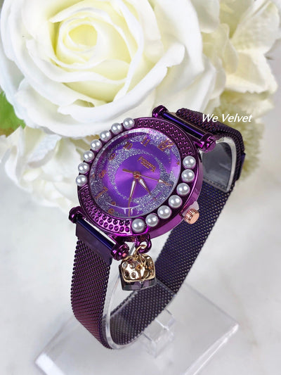 Ceas mov cu perluțe și brățară magnetică Francesca di Geneva C113