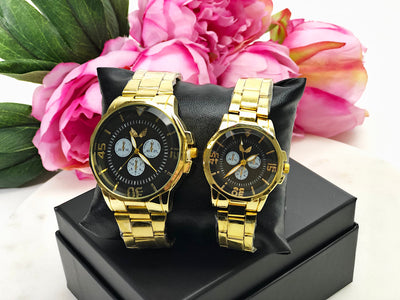 Set 2 ceasuri aurii cu cadran negru și cutie CADOU C265
