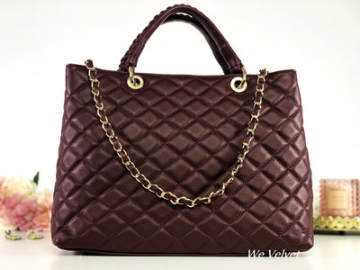 Set geantă mov închis piele eco lăcuită și portofel Ellusive