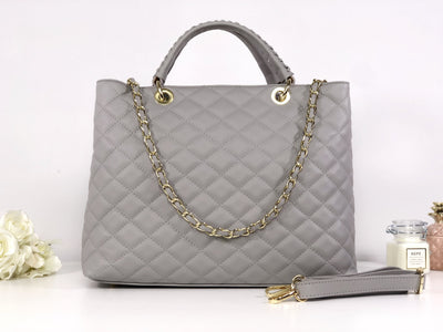 Set geantă coffee piele eco lăcuită și portofel Ellusive