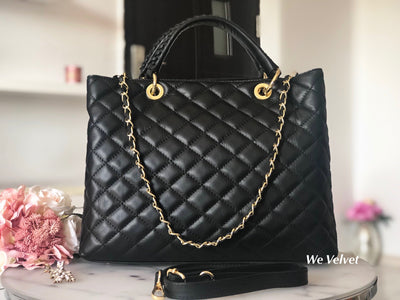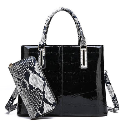 Set geantă neagră piele eco lăcuită și portofel Ellusive