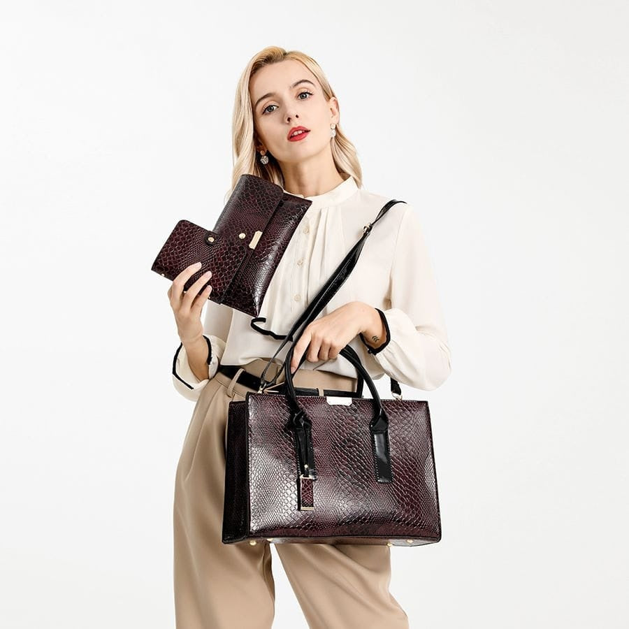 O geantă inedită din piele eco lăcuită, cu un snake print de invidiat! Este încăpătoare, extravagantă și mereu gata să te acompanieze în cele mai aglomerate zile! Organizează-te cât mai eficient cu portofardul încăpător și mini portofelul pentru carduri!
