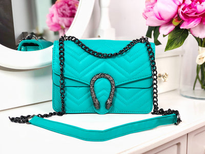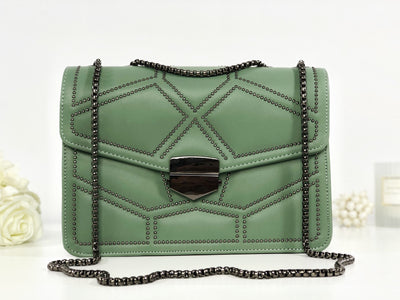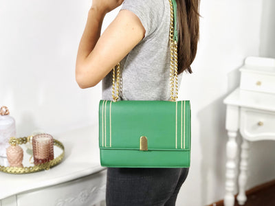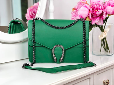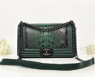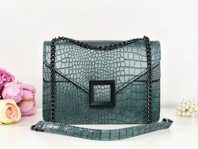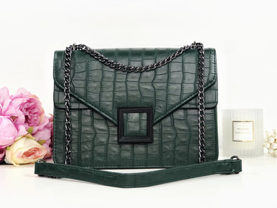 Geantă verde închis piele eco cu imprimeu croco Lina