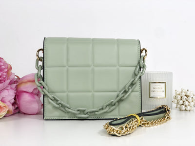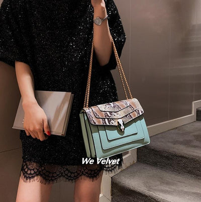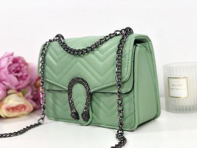 Geantă verde deschis piele eco cu print snake maro și negru Amber Lynn