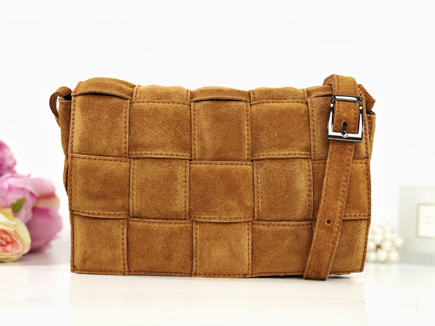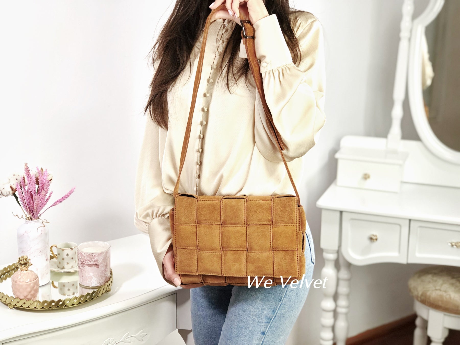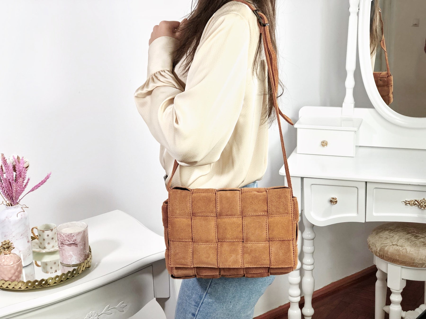 Frumusețea autentică și materialul 100% natural fac din această gentuță un accesoriu demn de o regalitate. Pielea întoarsă este recunoscută pentru rezistența și pentru textura sa catifelată ce oferă senzația atingerii unui nor pufos. Geanta este confecționată din piele naturală matlasată și dispune de un buzunar liber și un buzunar mic, cu fermoar. Barte apentru umăr este confecționată din același material și este reglabilă.
