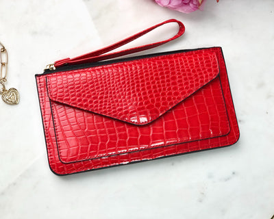 Mini portofel negru piele eco cu imprimeu croco Varnette