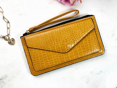 Mini portofel maro piele eco cu imprimeu croco Varnette
