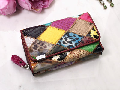 Portofel multicolor piele naturală cu accente portocalii și roșii Angelino
