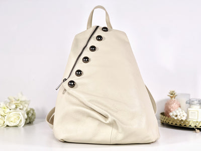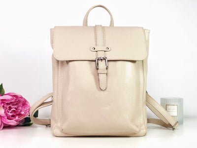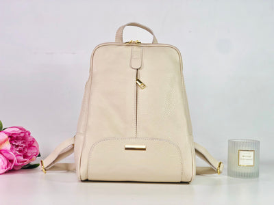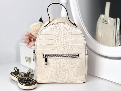 Rucsac bej deschis piele naturală cu imprimeu croco Clyde
