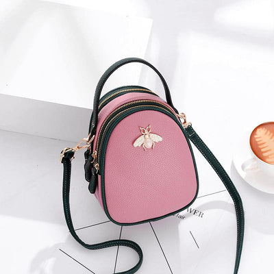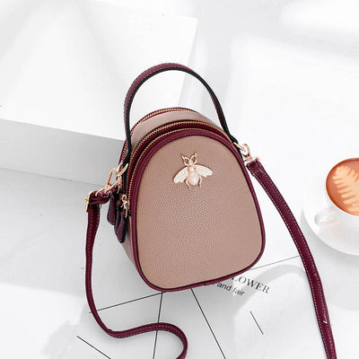 Geantă nude piele eco cu accente burgundy Bee Queen