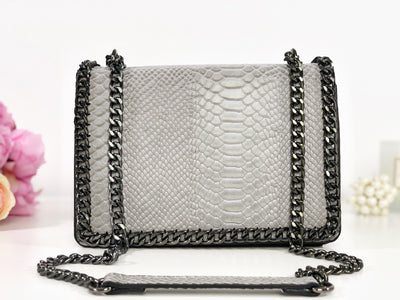 Geantă gri deschis piele eco cu print snake Karma