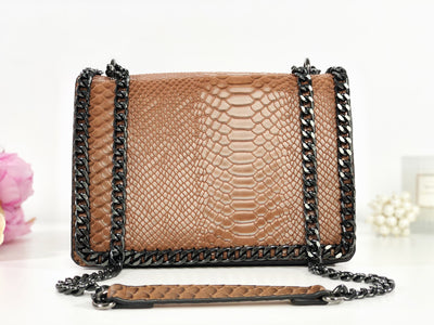 Geantă maro piele eco cu print snake Karma