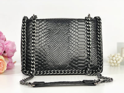 Geantă neagră piele eco cu print snake Karma
