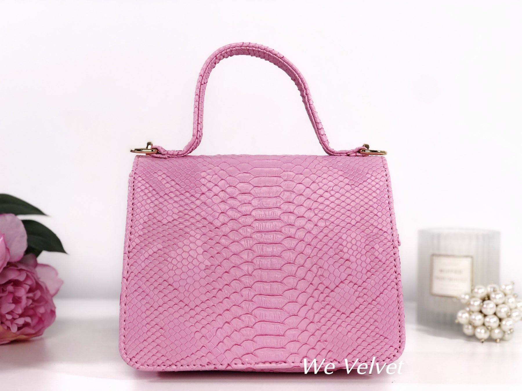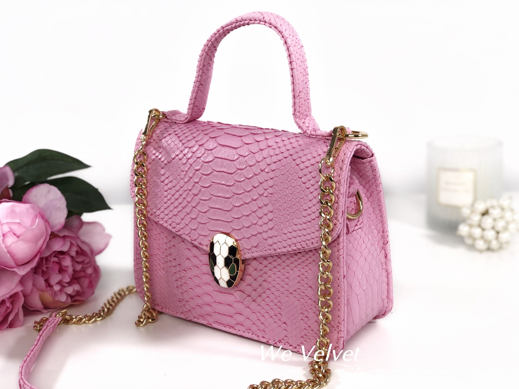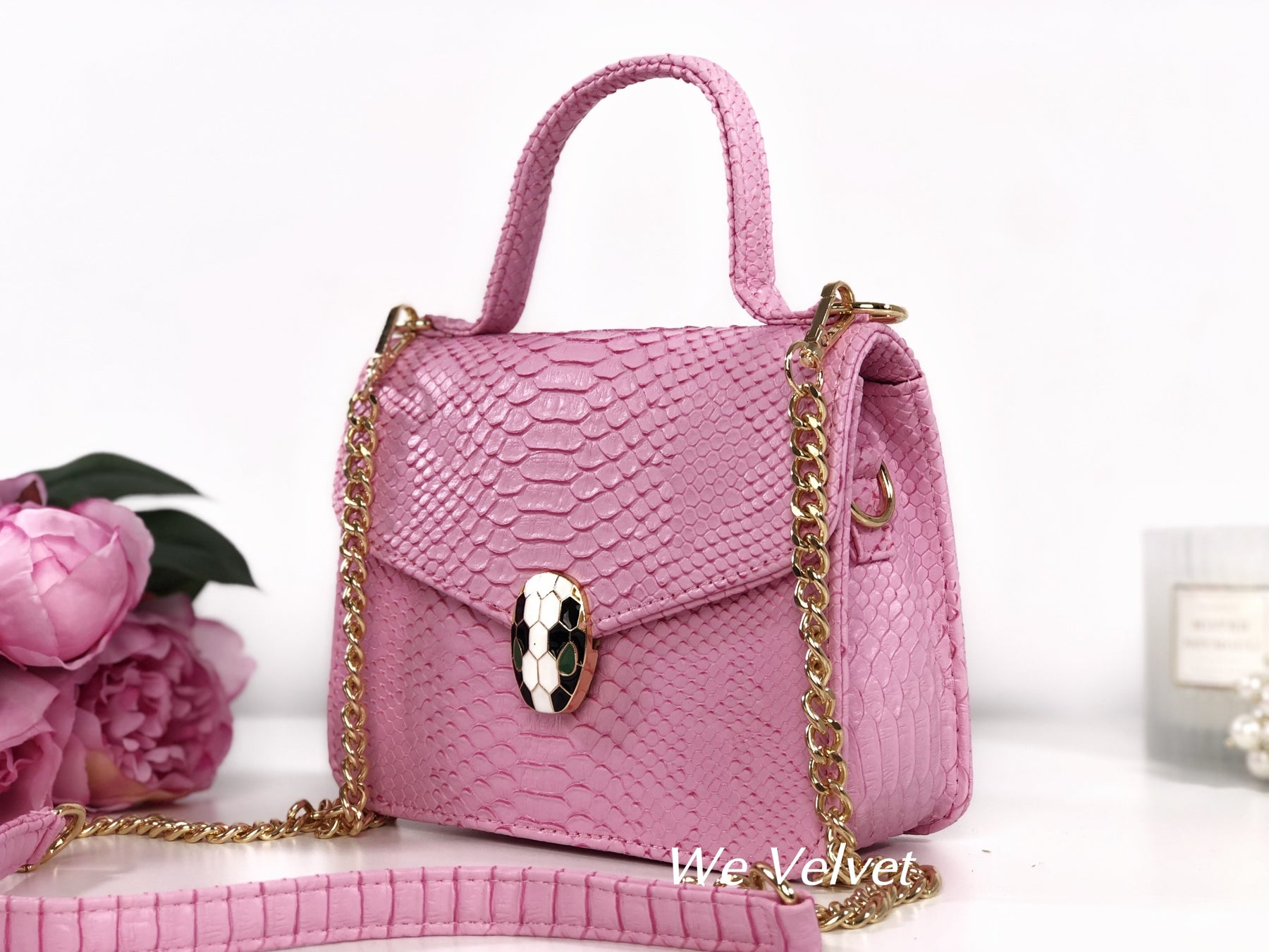 Geantă roz piele eco cu print snake Kora