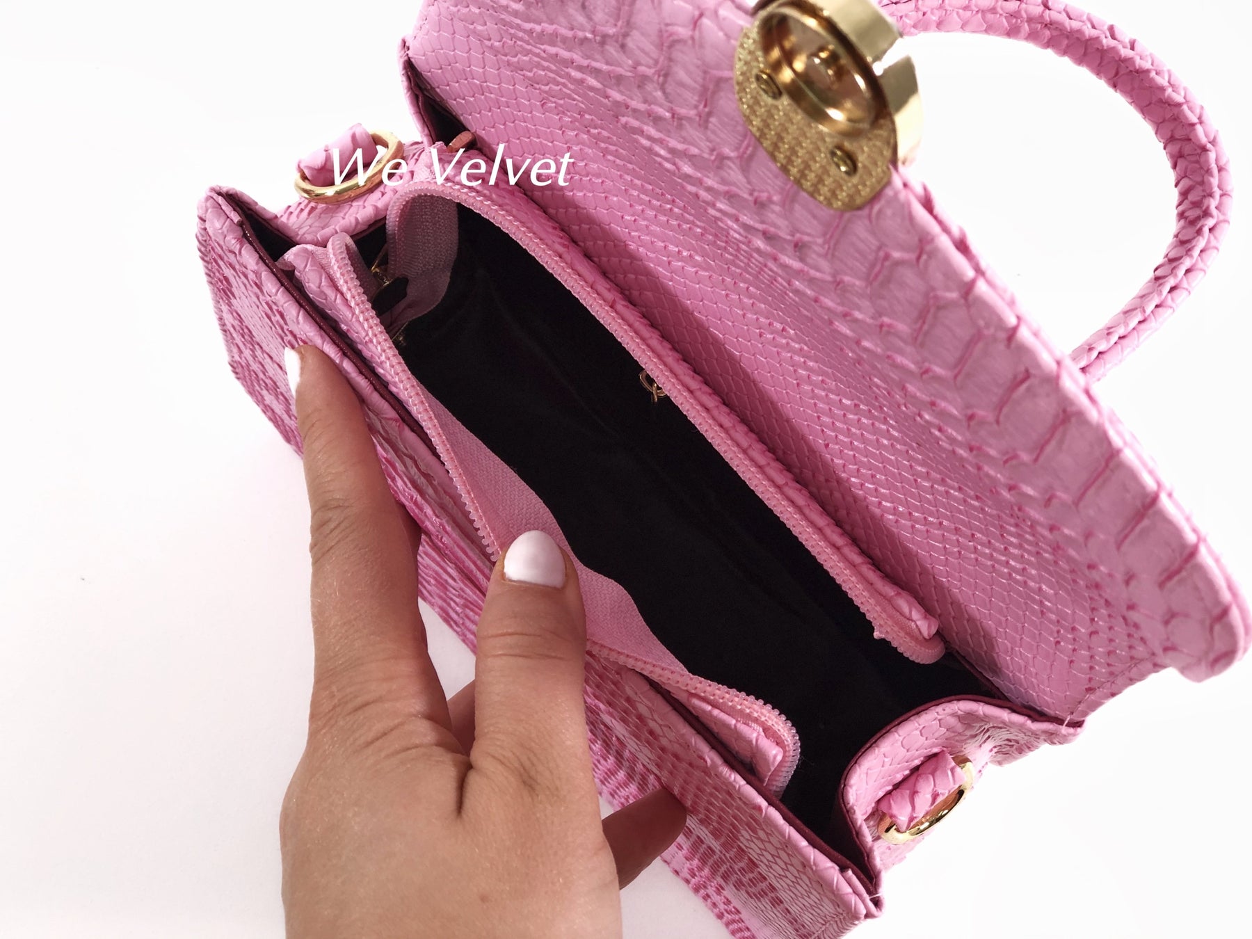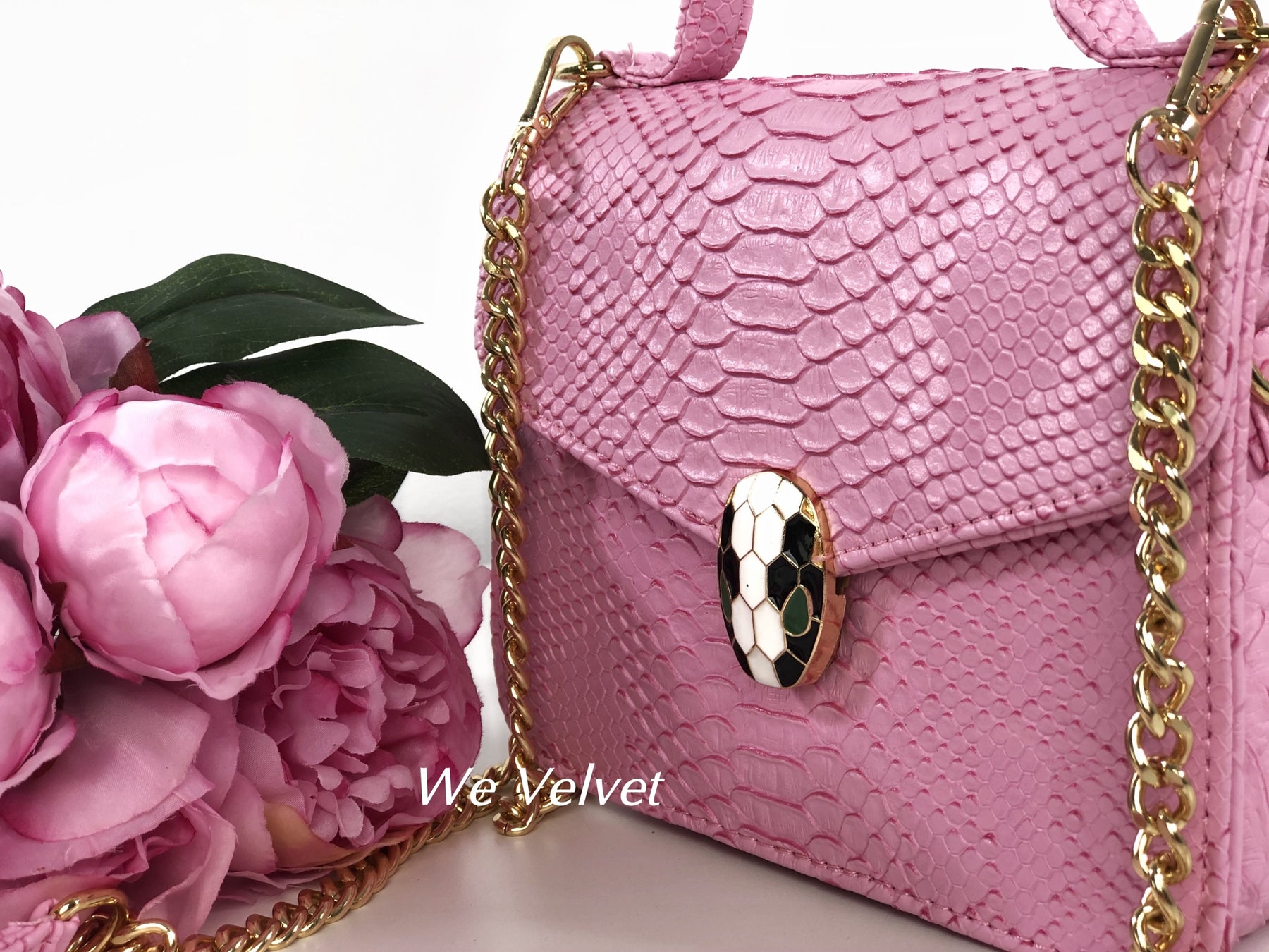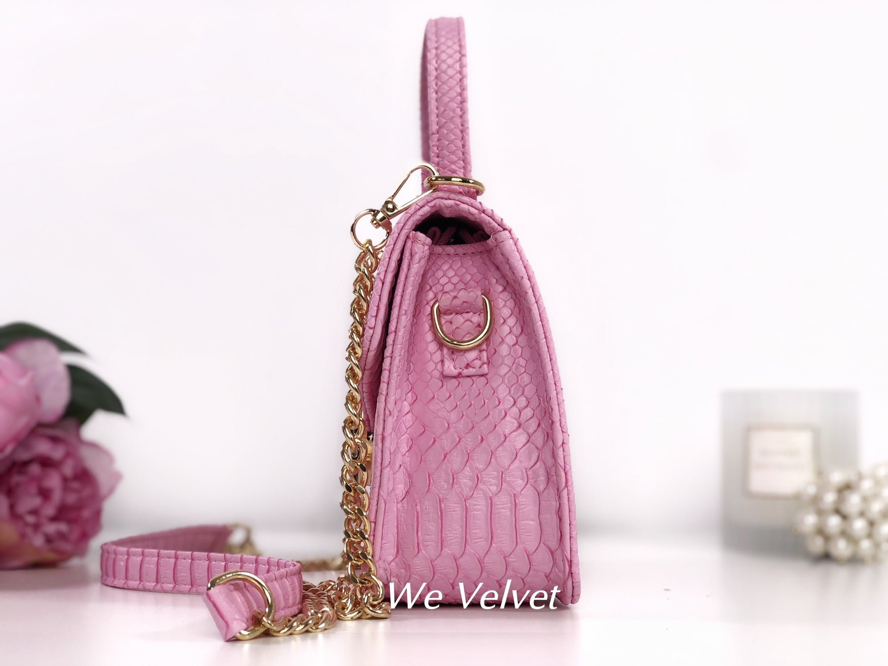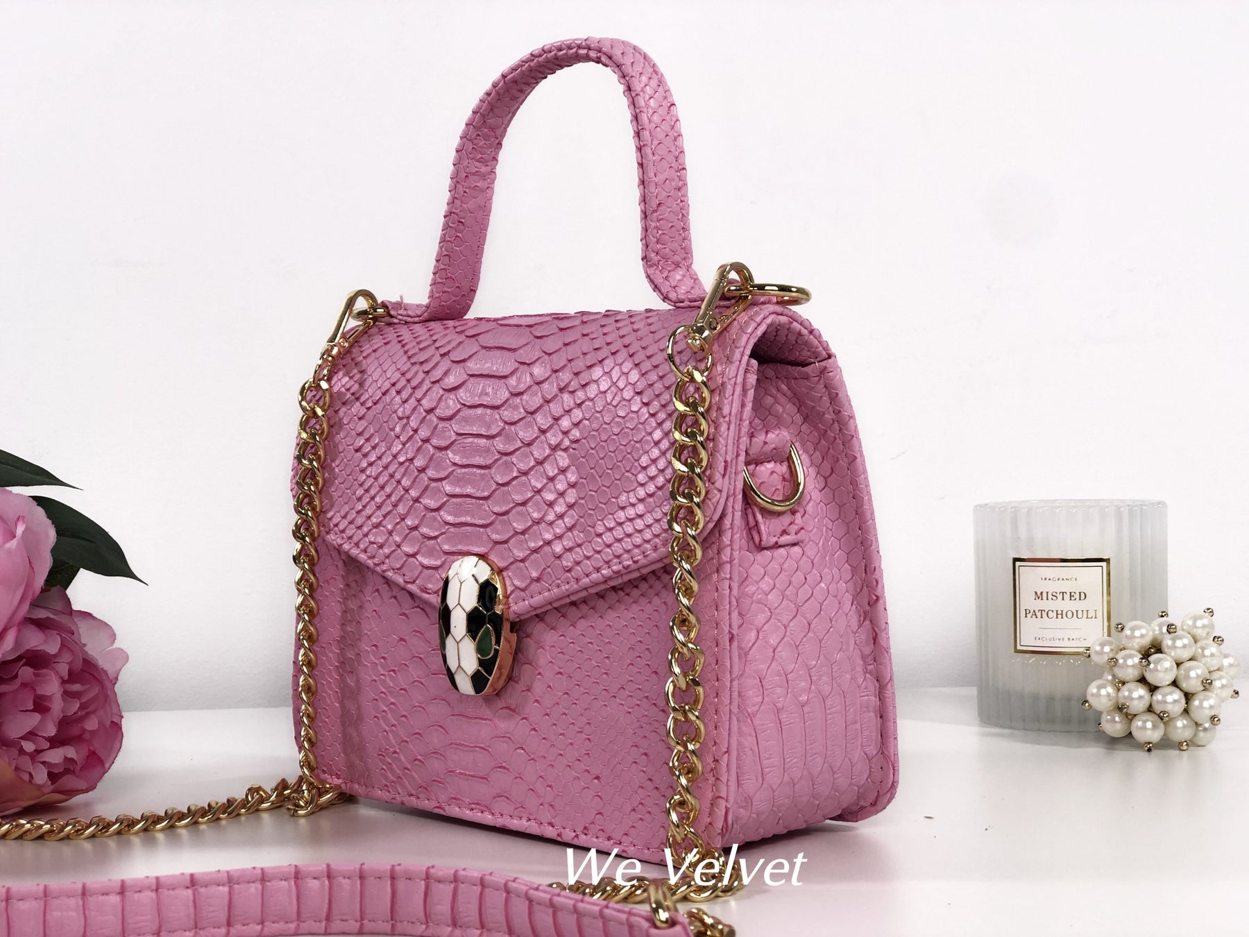 Geantă roz piele eco cu print snake Kora