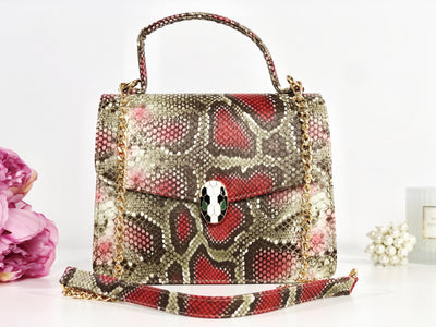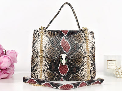 Geantă taupe piele eco cu print snake rosu Kora Ly