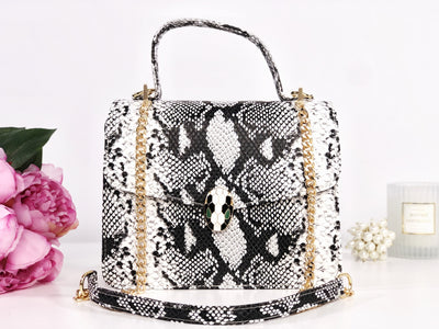 Geantă albă piele eco cu print snake gri și negru Kora Ly
