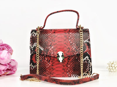 Geantă roșie piele eco cu print snake negru și alb Kora Ly