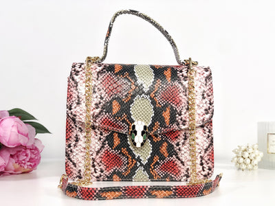 Geantă roz piele eco cu print snake portocaliu și negru Kora Ly