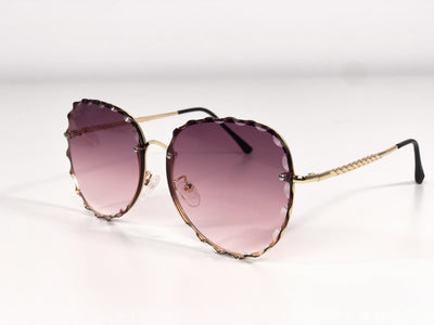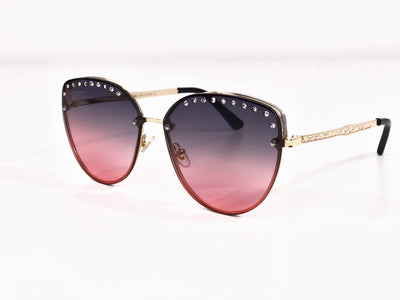 Ochelari de soare tip aviator cu perluțe și lentile în gradient roz-albastru O05