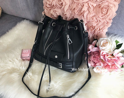 Geantă neagră piele eco tip săculeț cu fermoare Joshua