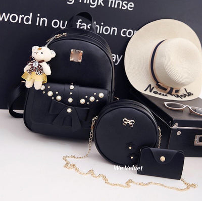 Set rucsac negru cu poșetuță și mini-portofel Penelope