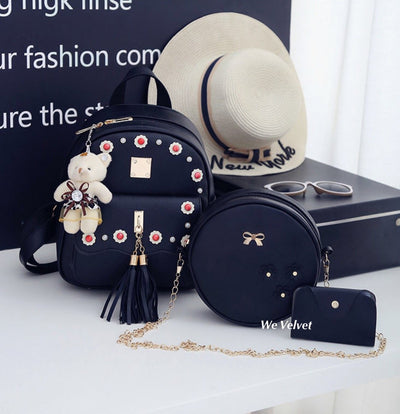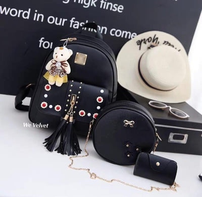 Set rucsac negru cu poșetuță și mini-portofel Coralie