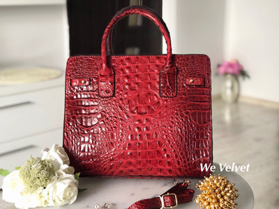 Portofel roșu piele naturală cu imprimeu croco Lucas