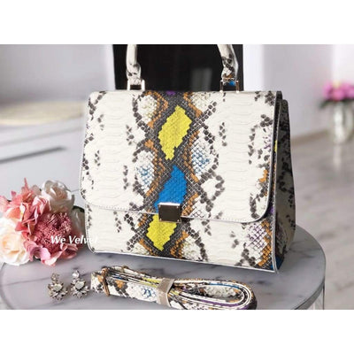 Geantă albă cu model colorat snake print piele eco Cobra Queen