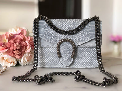 Geantă albă piele eco cu print snake silver Cobra Queen