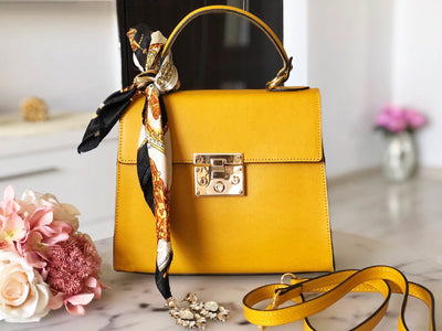 Geantă galbenă piele naturală cu imprimeu croco Allegria