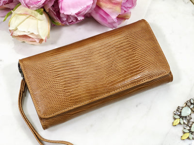 Portofel caramel piele eco cu print snake Cromy