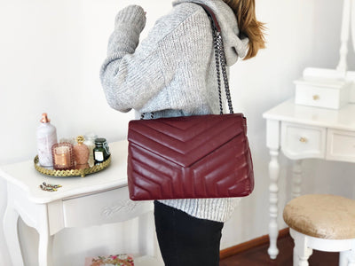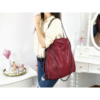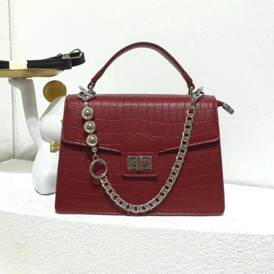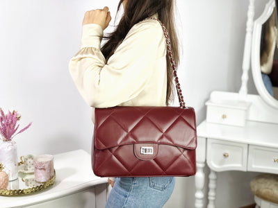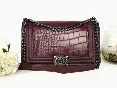 Geantă burgundy piele eco cu imprimeu croco Merlina
