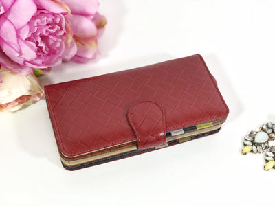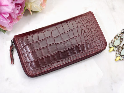Portofel burgundy piele naturală cu imprimeu croco Ignacio