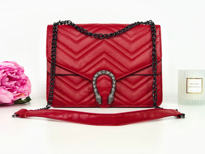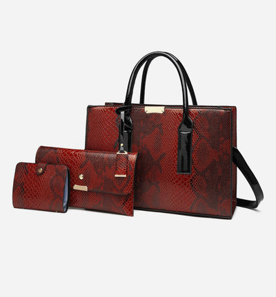 Set geantă roșie piele eco lăcuită cu portfard și mini portofel Kalisha