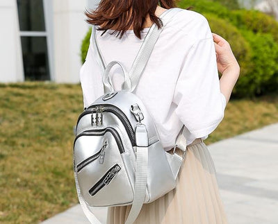 Set rucsac gri piele eco cu poșetuță și portcard Spring