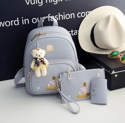 Set rucsac gri piele eco cu poșetuță și mini portofel Night Sky