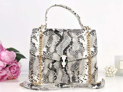 Geantă albă piele eco cu print snake gri și negru Kora Ly