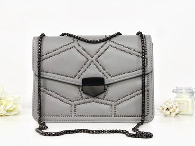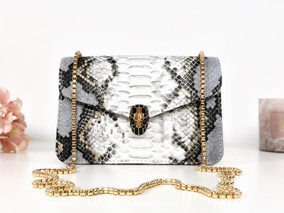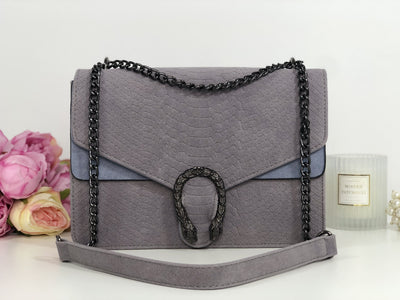 Geantă gri piele eco cu print snake alb și negru Kora Ly